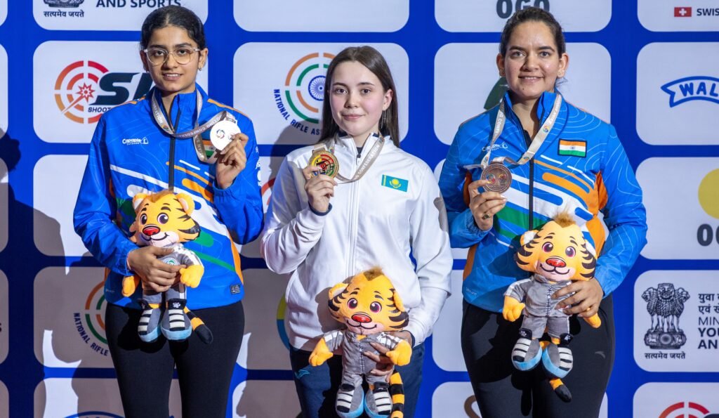Later in the junior women’s 3P final, Prachi Gaikwad emerged victorious with a score of 353.3. The 14-year-old Kazakh shooter Tomiris Amanova won silver with 351.4 while Anushka Thokur bagged another bronze for the hosts with an effort which ended after the 34th shot at 341.1.